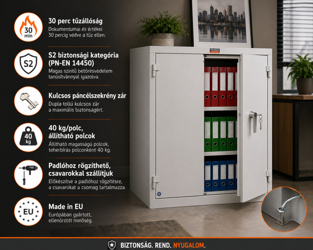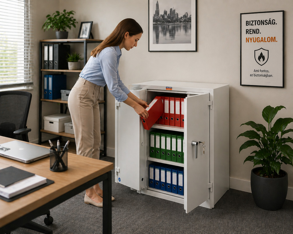 Ez a szekrény egy belépő szintű, de valós védelmet nyújtó megoldás dokumentumok számára.