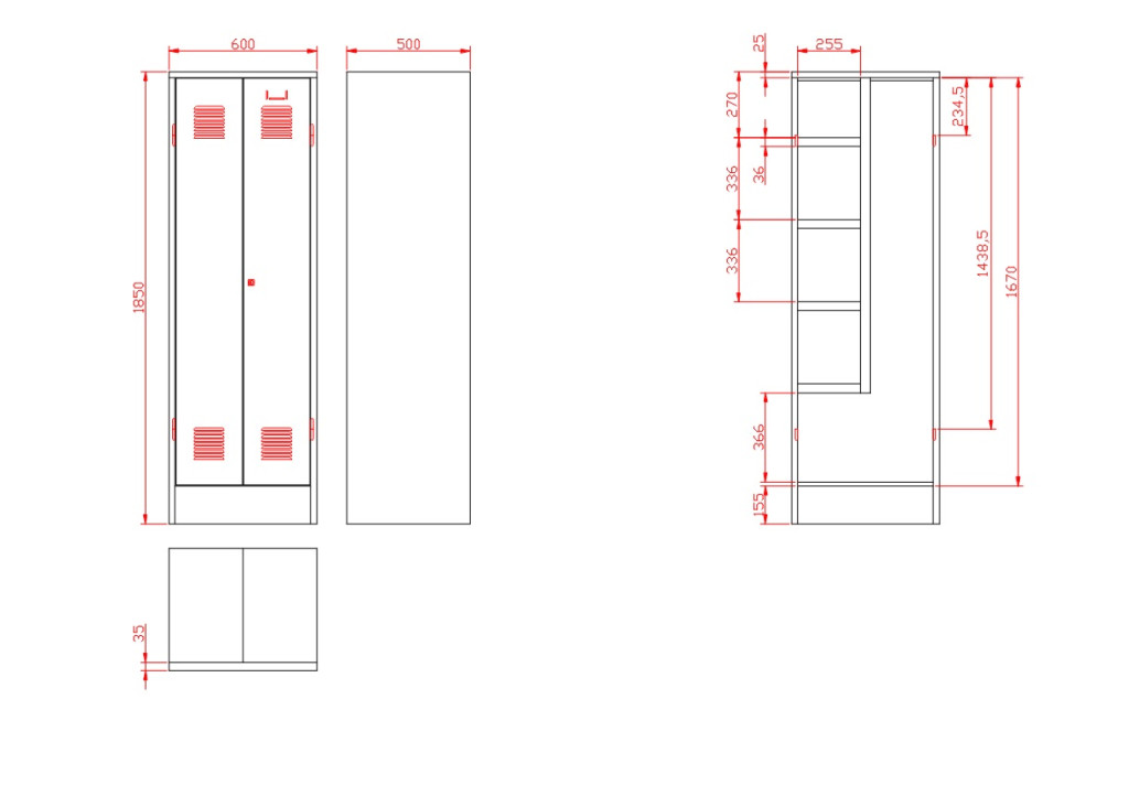 K2453U (SKS_32_U) kétajtós irodai öltözőszekrény 4 fix polc, akasztók