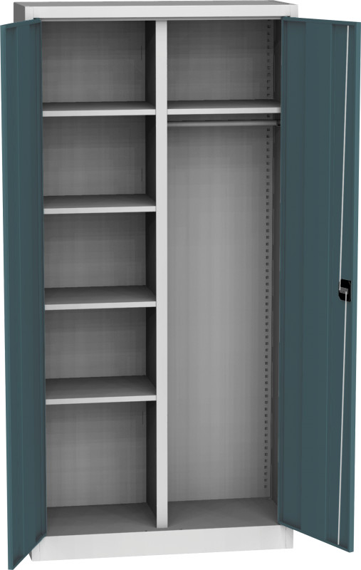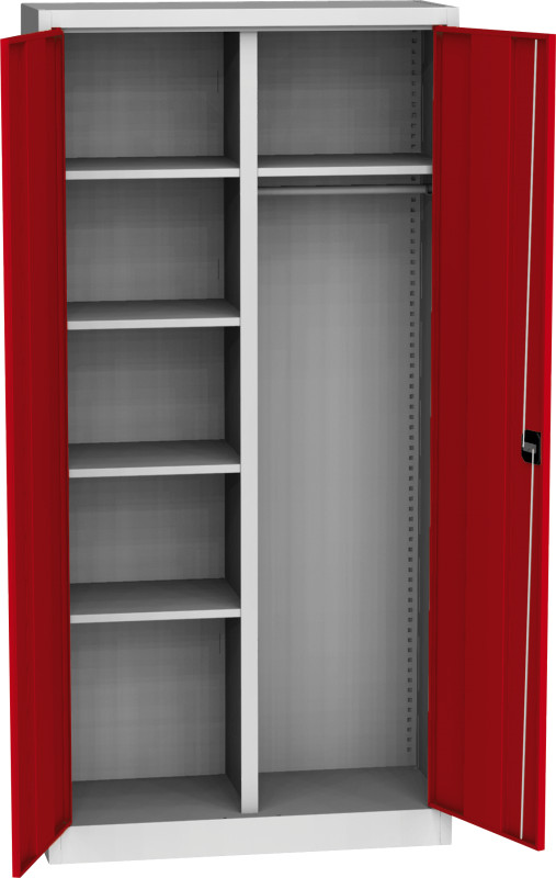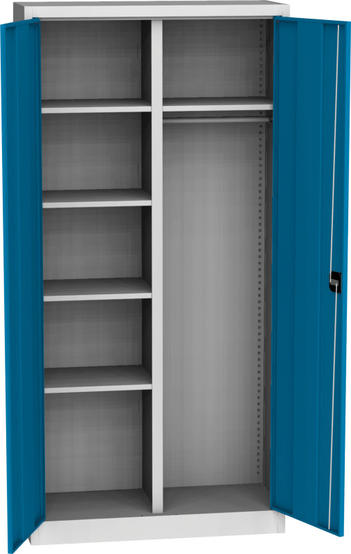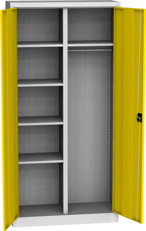 KSPS 01 P kétajtós irodai gardrób szekrény, 5 fix polc, akasztók