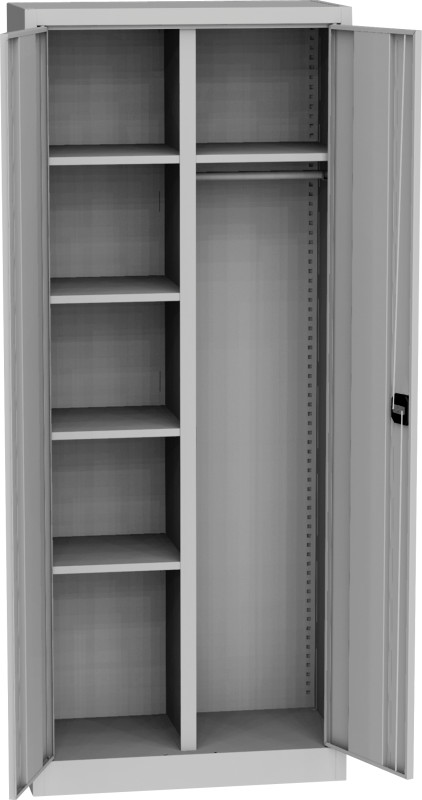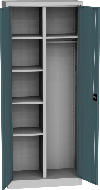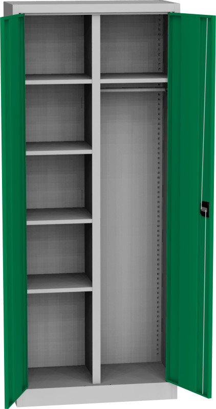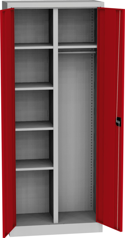 KSPS 02 P kétajtós irodai gardrób szekrény, 5 fix polc, akasztók