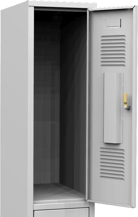 Hidegen hengerelt acéllemezből készült rövid ajtós öltözőszekrény 150 mm magas teli lábazaton