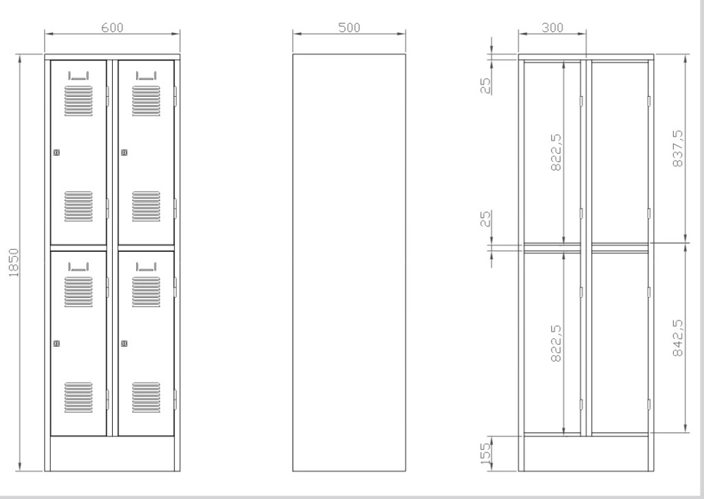 K2469/600 A 4-ajtós öltözőszekrény lábazattal (rövid ajtós, SHS_32_A)