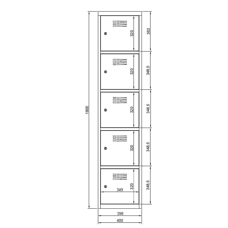 Sus 415 W értékmegőrző/csomagmegőrző szekrény (5 rekesz,lábazaton álló)