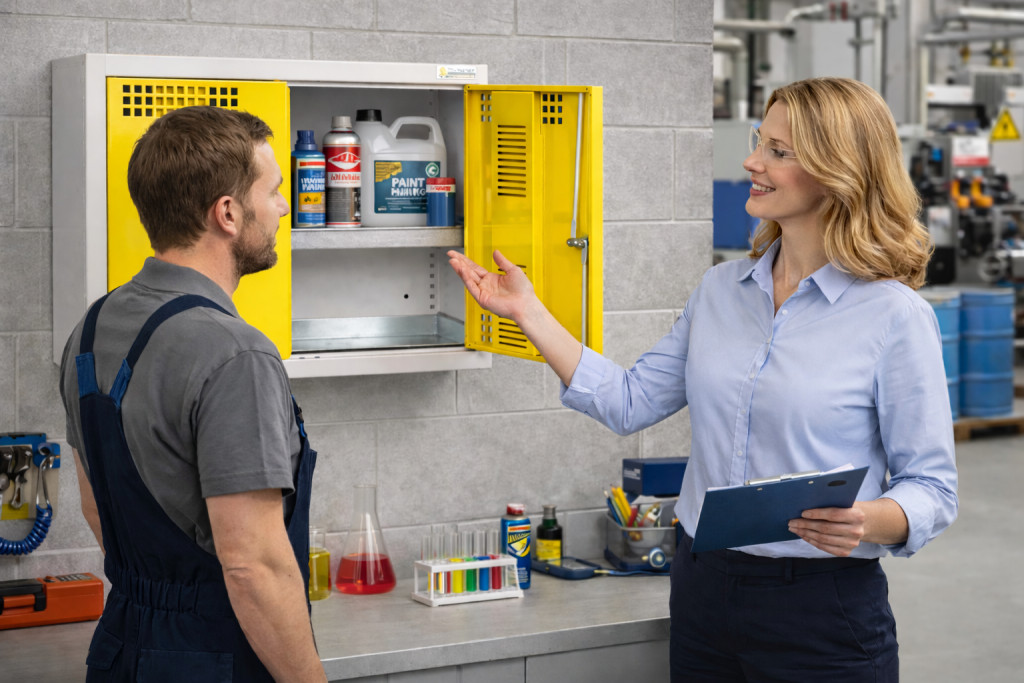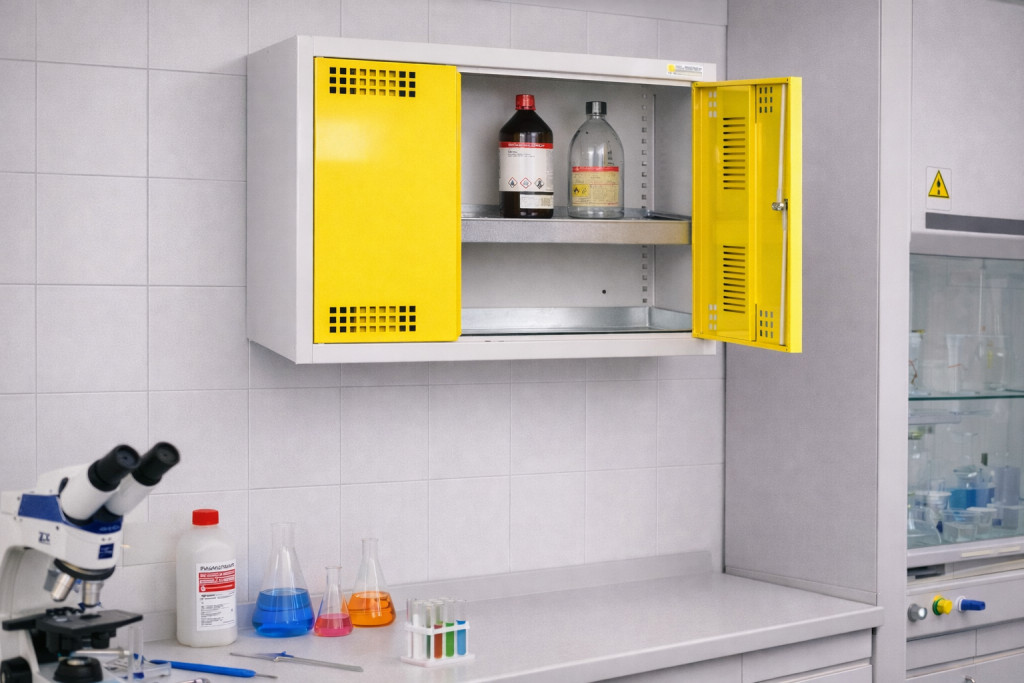 Hidegen hengerelt acéllemezből gyártott 2 ajtós vegyszertároló szekrény