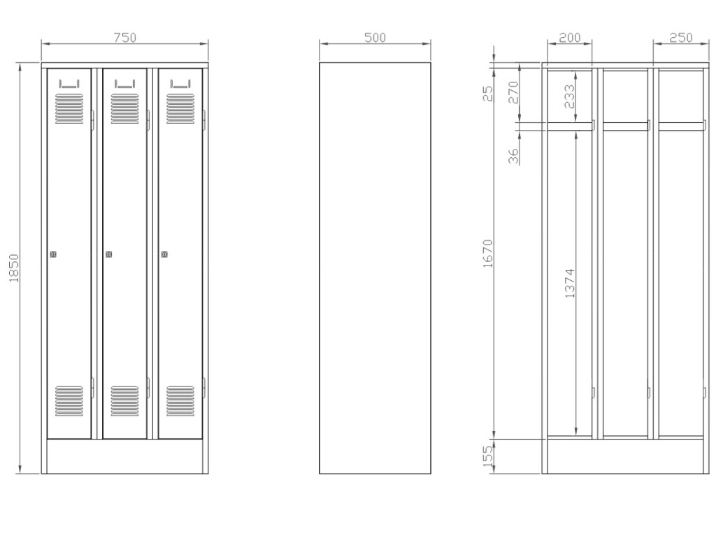 SAS 23 A helytakarékos öltözőszekrény, 3 személyes