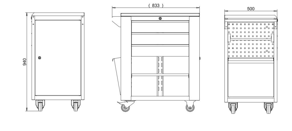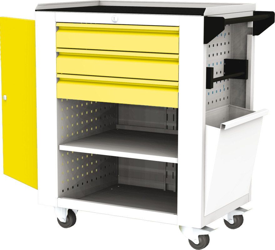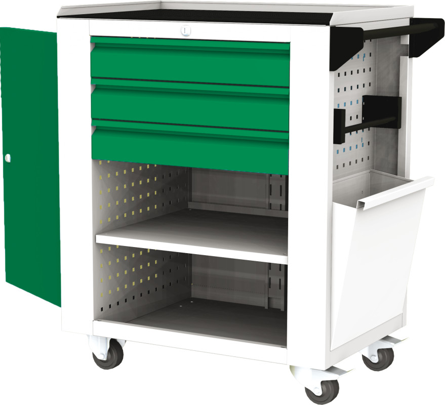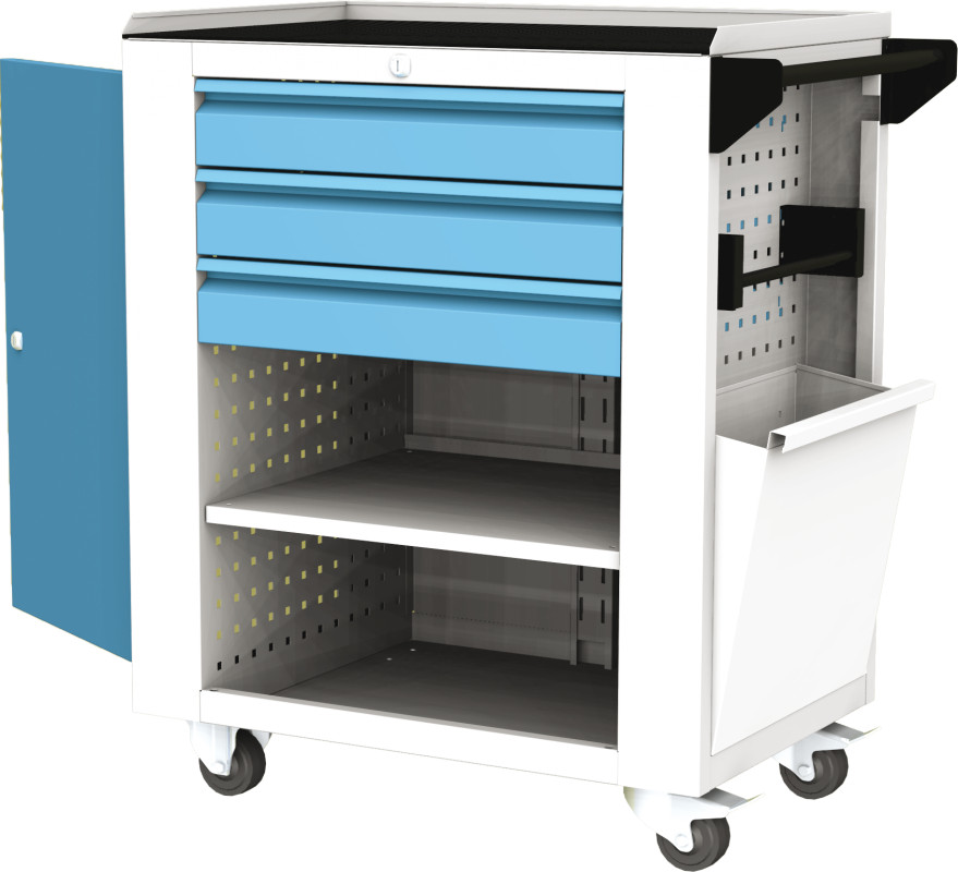 SVL_01_D műhelykocsi (3 fiók, 1 polc, zárható oldalsó tároló, szemetes, törlőkendő tartó)