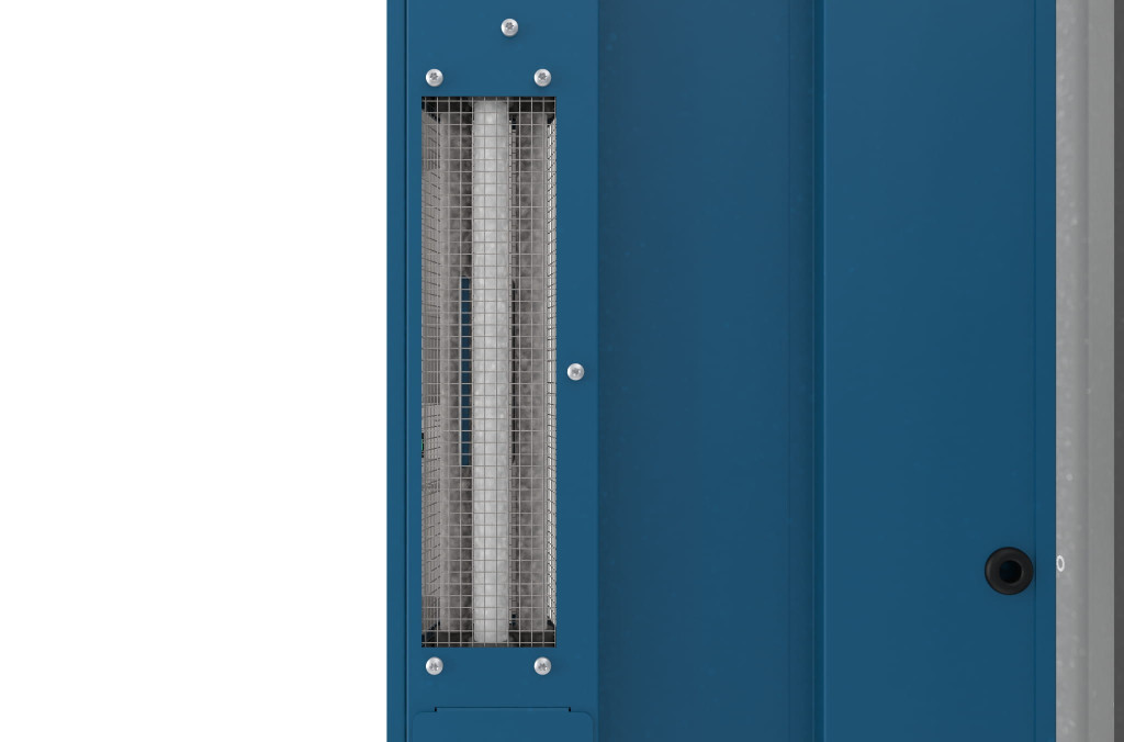 A szekrény ajtajába beépített UV-C fényforrás hatékonyan és vegyszer nélküli pusztít el minden kórokozót (baktériumok, vírusok, COVID-19 is)