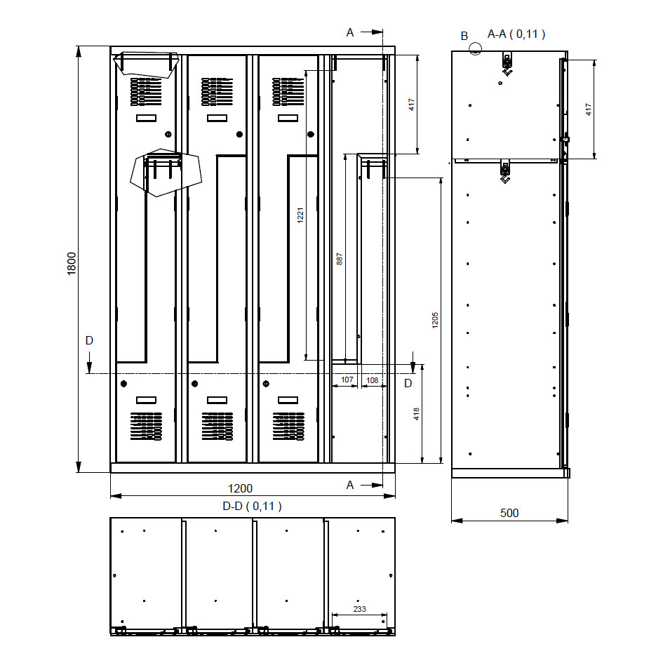 Sul 34 Wn "Z" ajtós öltözőszekrény (8 ajtós, lábon álló)
