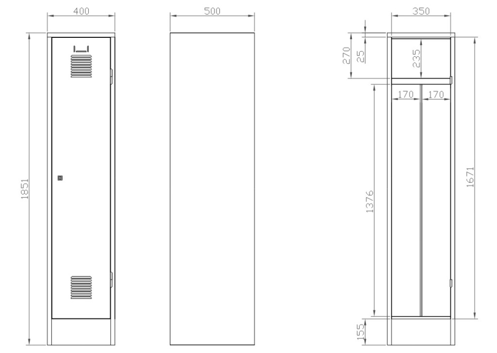 K2440/400 VM 1-ajtós öltözőszekrény, lábazattal, elválasztó fallal (SAS_41_T)