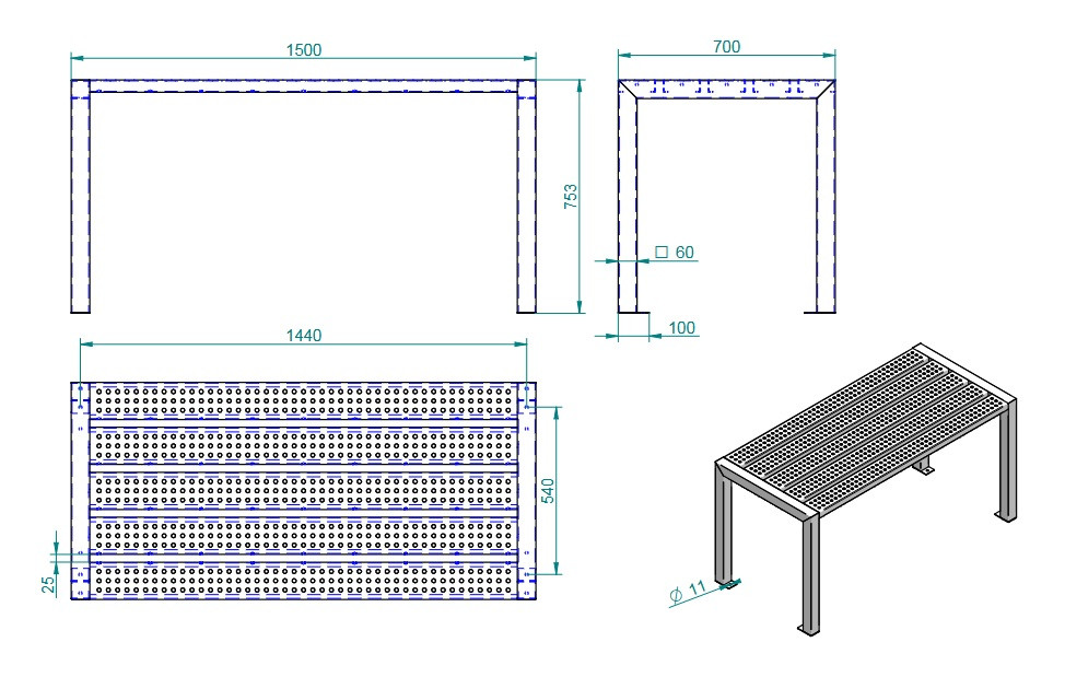 Anyaga: 3 mm vastag tűzihorganyzott acél környezetbarát porszórásos festéssel