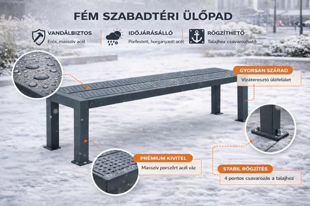Egyszerű rögzítés, minimális telepítési idő – ideális parkokba, pihenőkbe, intézményekhez.
