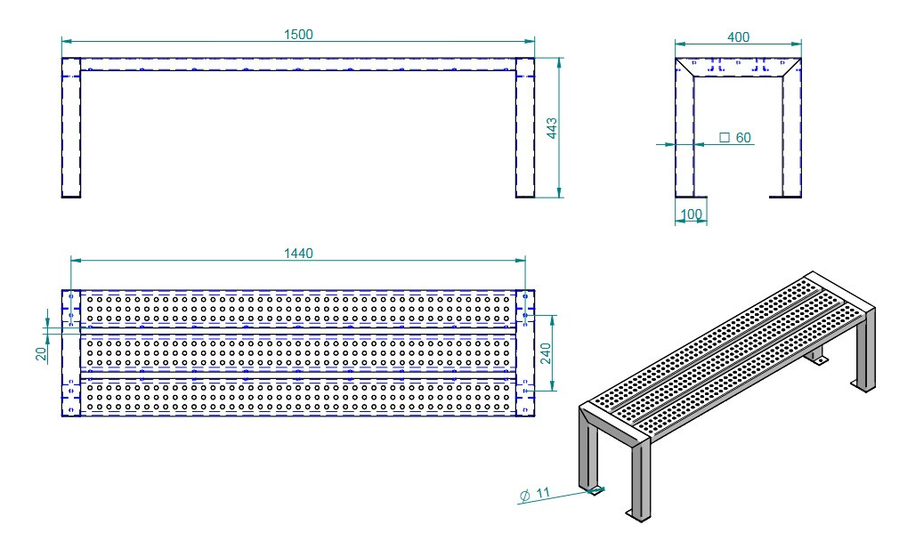 Anyaga: 3 mm vastag tűzihorganyzott acél környezetbarát porszórásos festéssel