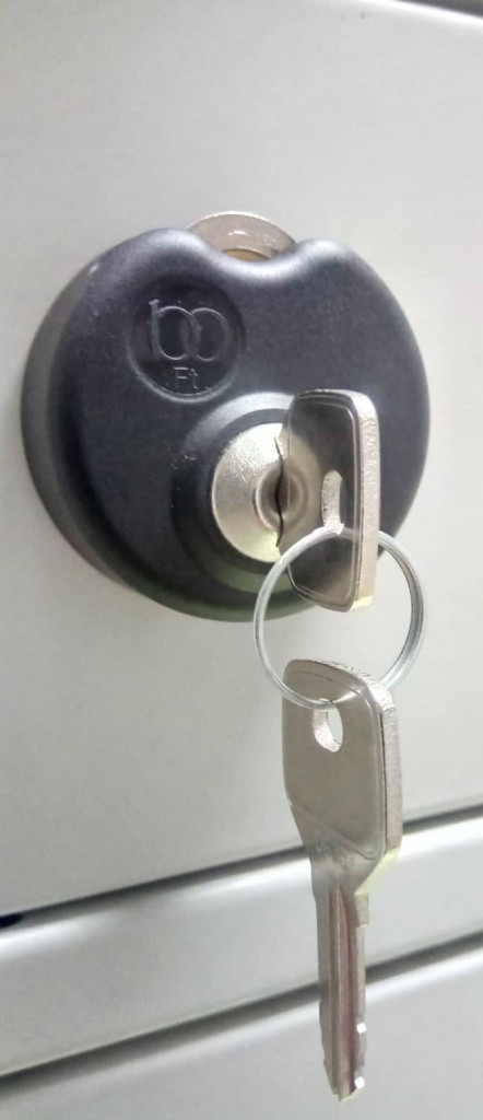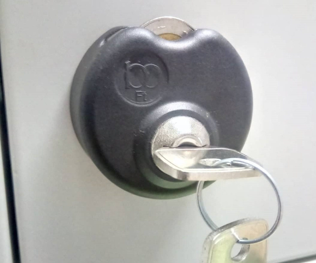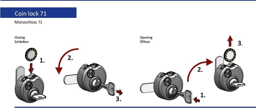 ZÁRÁS: A kulcs a 100 Ft-os érme behelyezését követően fordítható csak el és vehető ki a zárból