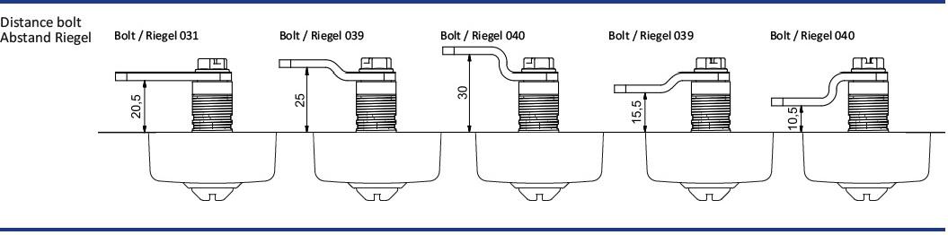 - 040 zárnyelv: 10,5 vagy 30 mm ajtóvastagságig